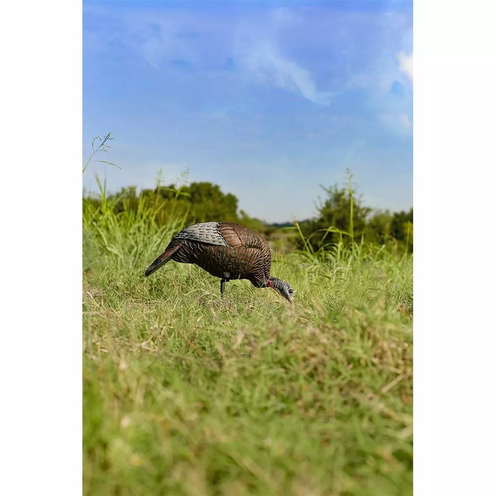 When you're looking to add contentment and relaxation to your decoy scene, the Flextone Thunder Chick™ Feeder is the decoy of choice. Whether standalone or combined with other decoy poses, she signifies contentment while she looks for her next bite to eat. Her relaxed head, body and feather placement will attract turkeys on all levels: from potential mates to curious hens who want to see what she's eating. This lady is as real as it gets.