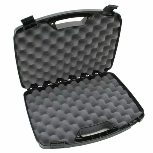 MTM Two Pistol Handgun Case is made to carry either two automatics or two revolvers with barrels up to 8 in. There is also space available for a trigger lock (not included) and comes with easy to open snap latches. The case includes two pad lock tabs for security.
