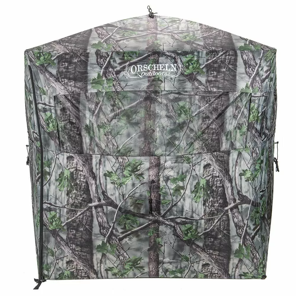 Orscheln Outdoors™ 2-Man Blind + Shooting Stick is made with 210D JXC Camo with black PU coated fabric that eliminates scents shine and excessive noise. The 360 degree window opening with removable mesh allows for a great view and shot. The five hub design offers quick set up and take down. There are mesh storage pocktes inside that keeps your gear organized. This combo includes a collapsible shooting stick which extends from 24 to 48 inches in seconds.
