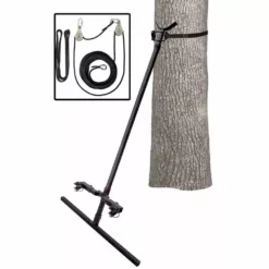 Hunt in comfort from the perfect spot you go with the Primal Treestands Comfort King Deluxe Steel Hang-On Stand. It features a spacious 20.5 x15.5 in. flip-up textilene seat with a full back rest. There is a 35.75 x 24 in. spacious foot platform that also includes a padded arm rests and an adjustable shooting rail as well as backpack straps for easy transport. The full body safety harness is included.